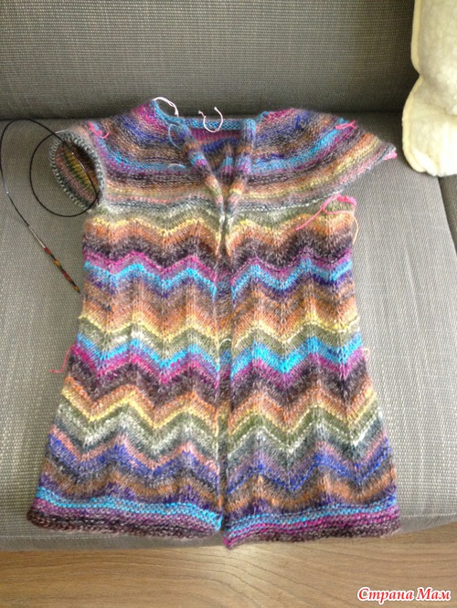 Но дал о себе знать при вязке рукавов. Нитки перемотаны в клубочки и абсолютно не понятно где нужный цветовой переход. Пришлось клубочки туда-сюда помотать.