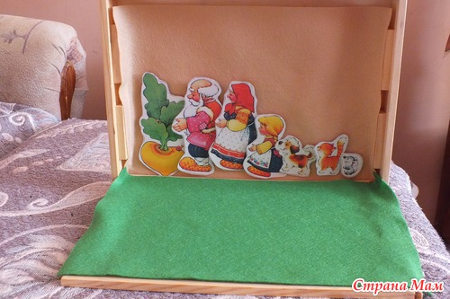 Мама сделала что - то типа фланелеграфа. Все картинки держатся на фетре на липучках. Надеюсь, что моя мечта о ковролинографе или фланелеграфе однажды осуществится.