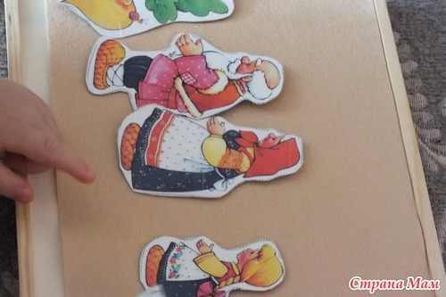 Ребенок с удовольствием играл с героями сказки сам. Изучали с ним предлоги за, около, между. А также повторяли понятия один - много. Но их мой сын уже давно знает.