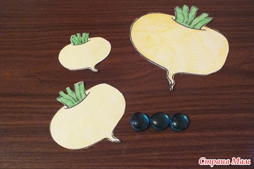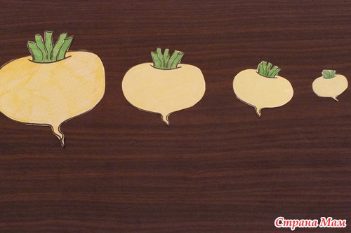 Математическое задание. Распределяли репки от большего к меньшему и наоборот. Считали их.
