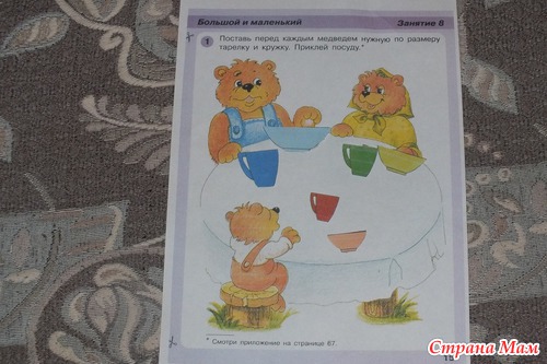 Выполнили задание из пособия Игралочка. Повторили понятия большой, средний, маленький.