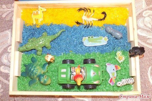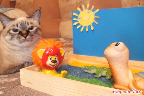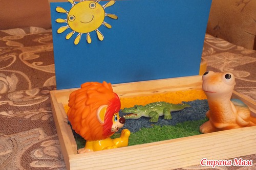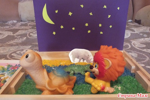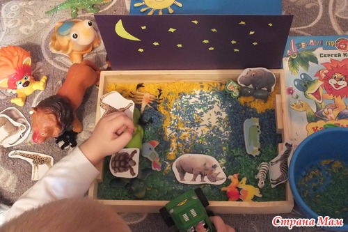 Представление завершилось, мама решила продолжить играть в сказку с сенсорной коробочкой. Заодно повторить жителей Африки. ТН у нас уже по этой теме была.