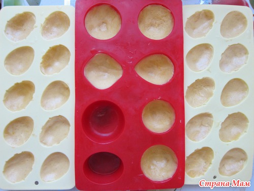 Захотелось сделать орешки, только формы у меня нет, зато была силиконовая с яйцами. Поэтому я задумала там испечь скорлупки. Но... забыла купить майонез, из-за чего взяла рецепт для вафель: