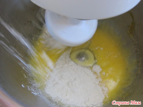 Добавляем муку и масло: