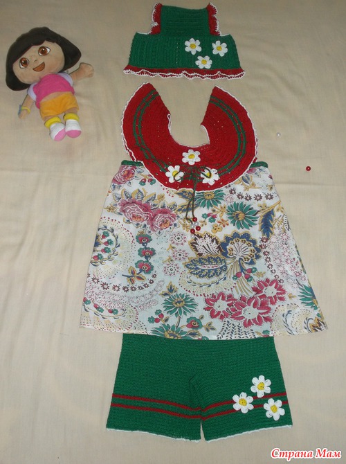 Тэги: комбинированное вязание, туника крючком, шорты крючком, Шапочка крючком, девочкам, крючком