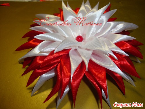 лента шириной 2 см.. длина лепистков 7 и 6 см.. а кол-во лепистков честно не знаю... не считала.. я их много делаю. а. а потом уже соединяю. как душе угодно...я все так цветы делаю.. у меня из за этого большой запас разных лепистков...когда больше закотовок фантазия лучше работает..... надеюсь когда нибудь из разносорта что нибудь эдакое сотворю.. .. чуть позже посчитаю распишу имено этот георгин.