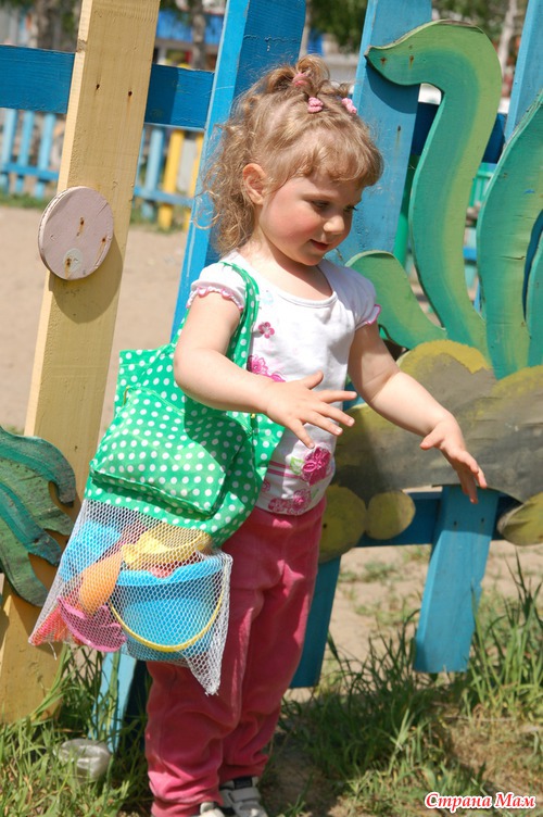 А вот наша сумка заполнена игрухами, к походу в песочницу готовы!