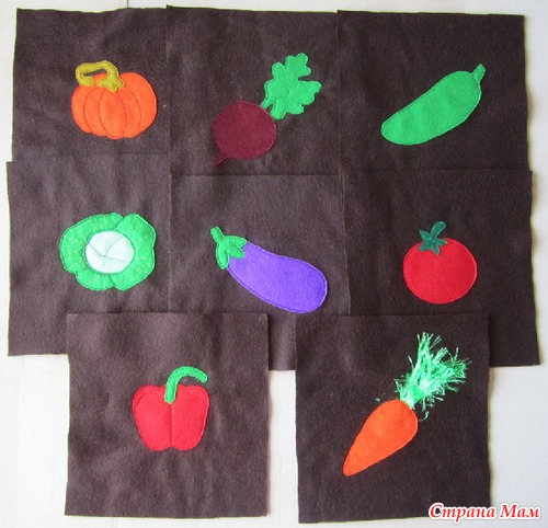 Это заказ воспитателя детского сада. Размер каждой салфетки 18см*18см, материал - флис, аппликации из фетра. Материал заказчицы, она же определила, какие фрукты-овощи сделать. Моя работа: сделала шаблоны, определилась с выбором фетра для каждого объекта (по цветам) и уже сама работа по пришиванию аппликаций. Затраченное время - целый день (с утра и до позднего вечера, даже можно сказать до ночи). Ничего подобного не делала и даже не представляю сколько это может стоить!