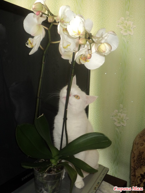 Вчера муж притащил орхидею. Облазила инет, но так и не поняла как правильно ее поливать и обрезать после цветения. Кто знает подскажите и объясните доступным языком. Вот она красавица Цветы поближе Ну и кошка пришла познакомится Читать полностью