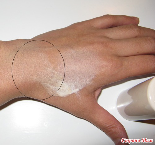 Подмешиваю загарный тон, чтобы было видно как ложится в цвет кожи