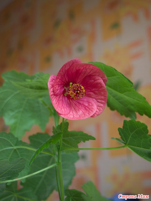 Затем абутилон, который я выращивала из семян. Посадка была в сентябре, а теперь цветет не переставая.