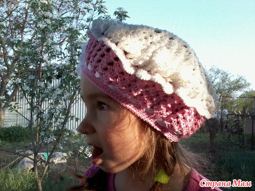 вязала из бегонии, крючком №2. хорошая схема есть тут http://masterclassy.ru/vyazanie/shemy-vyazaniya/2948-beret-shema-vyazaniya.html, моржет кому пригодится, да и у нас уже ее выкладывали многие. так что я просто хвастаюсь)))))))