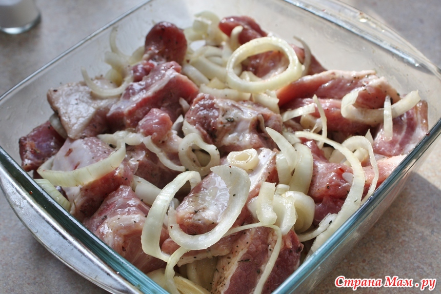 Через час ребрышки перекладываем в посуду для запекания, если готовим в духовке или в сковороду, если на плите