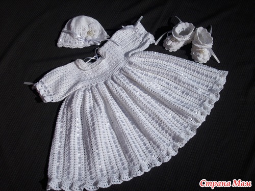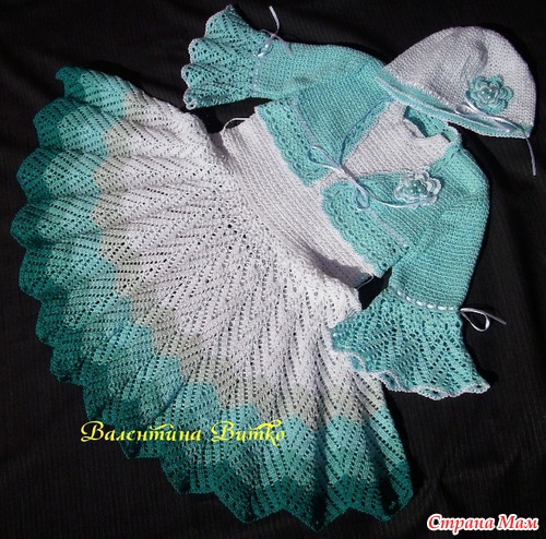 Комплект связан из кировского ириса, расход примерно - 400 гр. на рост 110 - 116 см. И этот комплект связан из кировского ириса на два годика А это крестильный комплект 3-6 месяцев. Ушло около 300 гр. Лили от Ярн Арт. и около 20 м атласной ленты 6мм. Пока это все. Спасибо, что заглянули! Читать полностью