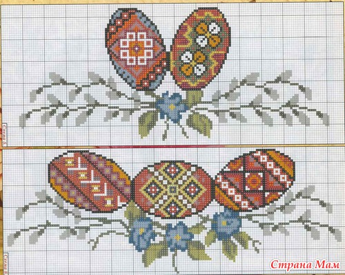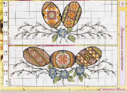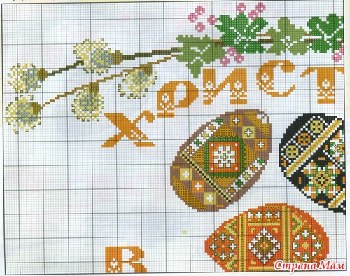 Сразу признаюсь - вышила не все 100% (как говорится одной ночи не хватило), но после праздников обязательно добавлю веточки вербы внизу и серединку зеленого яйца зашью, только еще не решила как (может сине-голубым??)