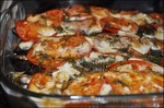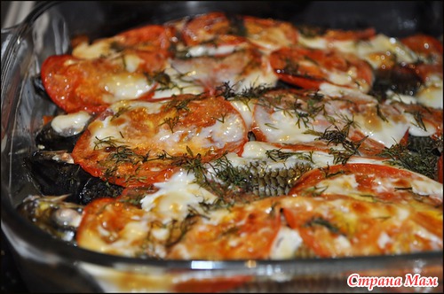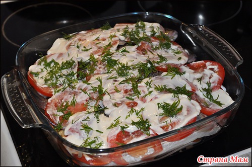 Сверху выкладываем рыбку. Ее мы тоже немного солим.