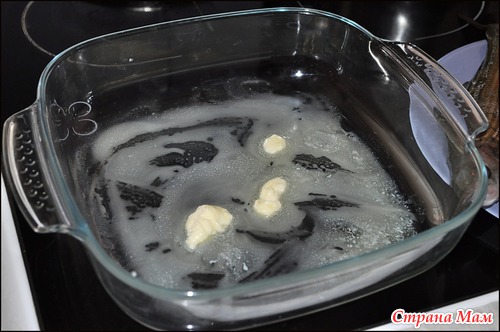 В форме растапливаем сливочное масло, чем больше, тем вкуснее рыбка получается.