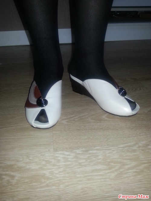 Сабо - само очарование! Танкетка очень удобная и красиво отделана под рогожку. Предусмотрена резиночка на случай, если нога отечет