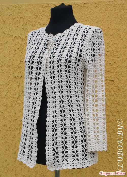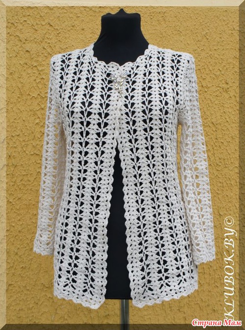 *Восхитительный белый кардиган, выполненный очень простым узором.