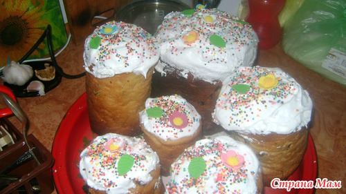 Мы живём с моими родителями и конечно же вместе готовим. Вот приготовили наши пасочки на праздник И дочки помогли сверху красоту наводить )))