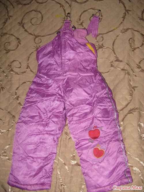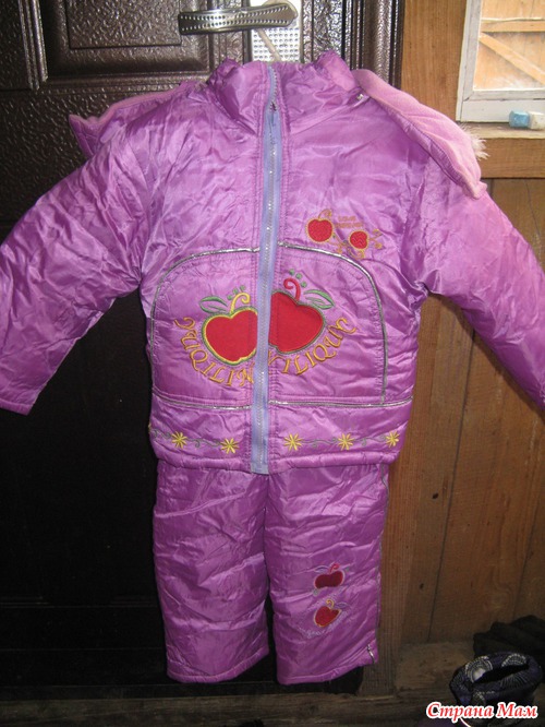 Продам зимний костюм (куртка и полукомбинезон) фиолетового цвета с аппликацией на худую девочку. Нам подарили, но мы элементарно не влезли - ребенок у меня не из худышек. Длина штанин полукомбинезона 35 см, длина по спинке 73 см. Длина куртки 42 см, длина рукава 38 см. Новый, но перешита молния - поломалась. Цена 450 руб + пересылка до вас