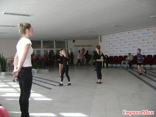 Бедные наши детки и устали, и проголодались. Бутерброды с колбасой были буквально проглочены, 3 литра воды ушли на ура... Детки немного повеселели. Где-то часов в 8 вечера опять репетиция и разминка в холле. Дети устали, зевают. Руководитель их умыла холодной водой, похлопала по щекам-немного проснулись.
