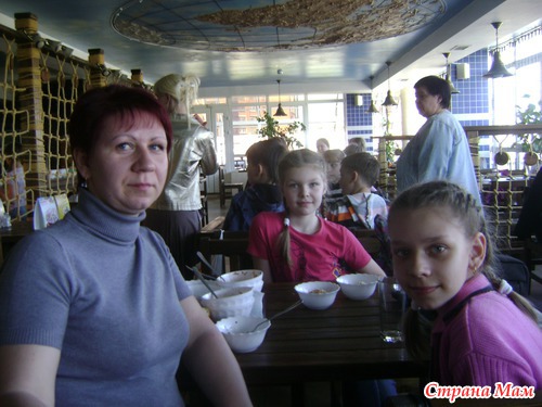 детки проголодались и мы отравляемся в близлежащее кафе "Парус"