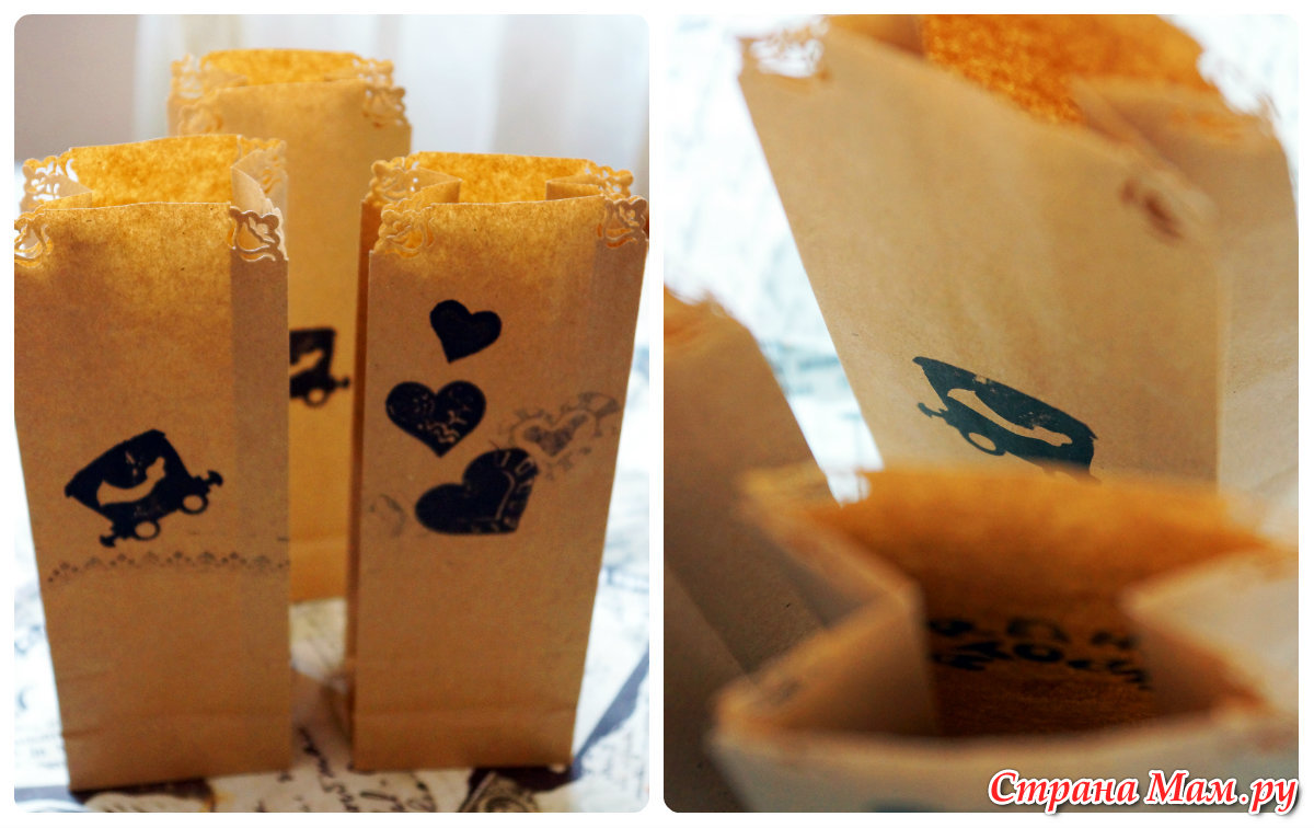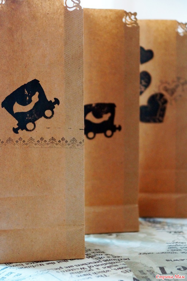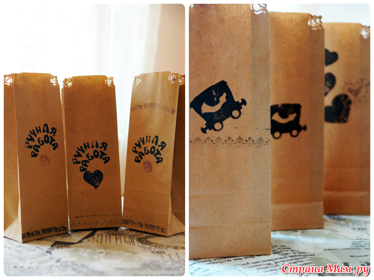 Заказала я на Ярмарке Мастеров крафт-пакеты двух размеров и начала над ними колдовать...