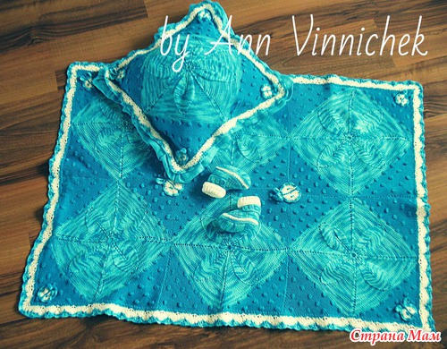 Вязался по схеме найденой на просторах тырнета. Сразу как-то запал душу, так что, думаю, аналогов много. Моя первая проба вязания пледиков Нитки Пехорка "Детский каприз". Подклад изо льна с каким-то добалением, не мнется. Ушло мотков 10, не помню точно Читать полностью