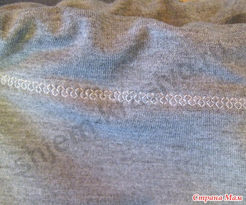 Для обработки цельнокроеного пояса и низа брюк, делаю следующее: подгибаю срез на нужную ширину и настрачиваю пояс на основную деталь, используя декоративную строчку своей швейной машины, предварительно не забыв обметать маленькие разрезы для вдевания шнура.