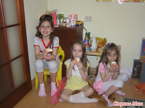 Потом девочки играли сами. Задували свечку, ели десерт, мороженое.