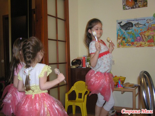 Потом девочки играли сами. Задували свечку, ели десерт, мороженое.