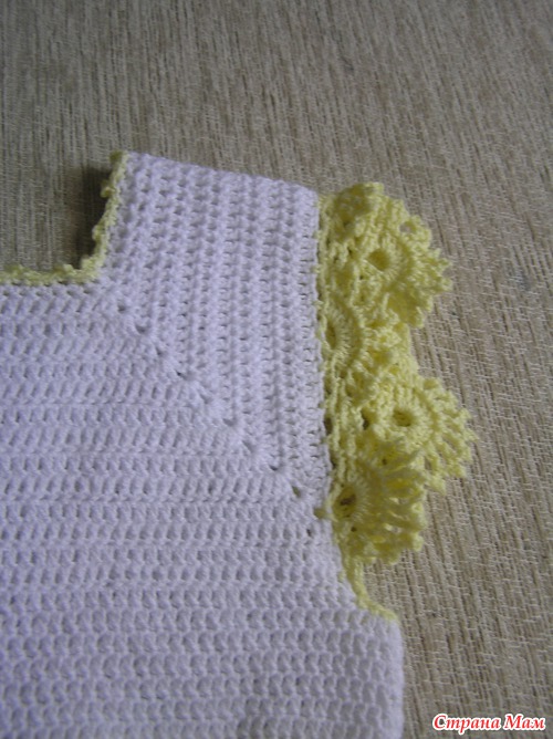 Никак не получалась кокетка. Если по размеру плечи, то в груди широко. В итоге, воспользовалась описанием платья https://www.stranamam.ru/post/1943216/. Связала до нужного объема груди, а потом довязывала до нужной высоты проймы перед и спинку.