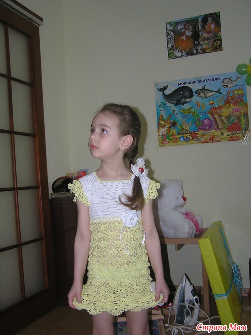 Благодаря нашим замечательным странамамочкам связала я своей доченьке платье на День Рождения. Она прямо не могла дождаться, когда платье будет готово. Ей очень понравилось! Спасибо вам всем огромное. Вот здесь был он-лайн: https://www.stranamam.ru/post/3146398 - Варваря. Также спасибо Нарнии, olga-shtef и Антарктика.