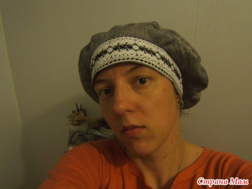 Задумала себе беретку интересную какую нибудь, а то всё платки и платки. Много фоток не будет, потому как когда шила не думала снимать и выкладывать. Но она простая и описание будет подробным.