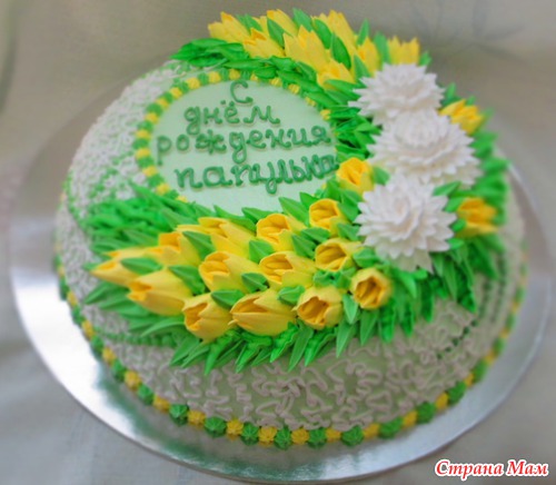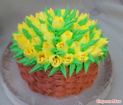 Спасибо! Розы и тюльпаны и другой декор сделан из белкового заварного крема.Поищите в инете,есть видео даже.У всех один и тот же рецепт этого крема.Главное,сироп доварить.Тюльпаны делаю из самодельной насадки,сделанной из пробки