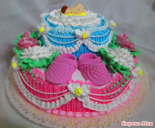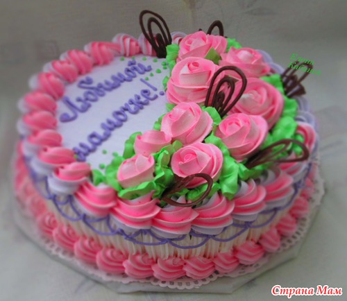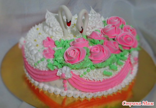 Я уже где-то видела вашу красоту!!!!Восхищаюсь вашими цветочками, завитушками, просто супер!!!Всегда мечтала тоже научиться кремом украшать, да ка-то не получается этот крем у меня,,,,делала рецепт на водяной бане, вроде ничего выходит, только еще уметь нужно украсить.Тортики класс!!