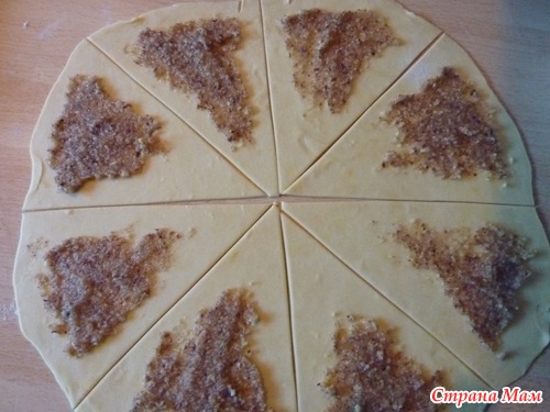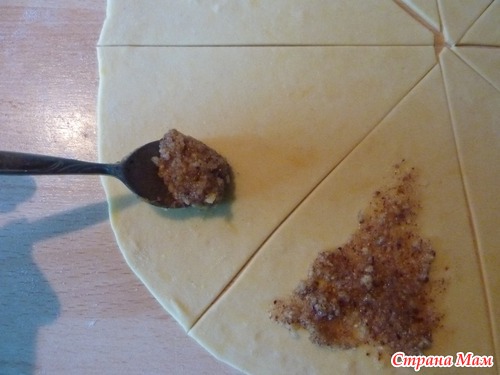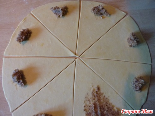 Положить на «основание» треугольника начинку.