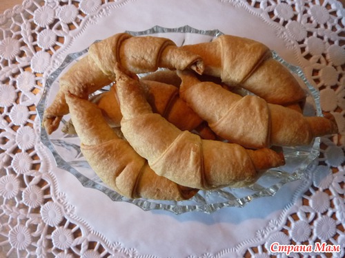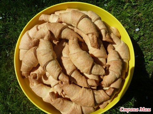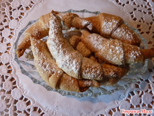 Достав противень из духовки, сразу же посыпать рогалики сахарной пудрой.