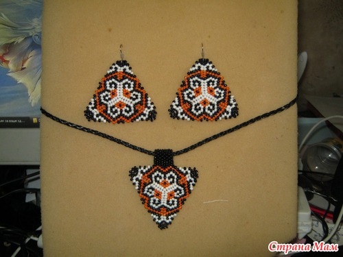 Кулон и серьги - треугольники. Сторона треугольника 5 см. Схема от Anabel: