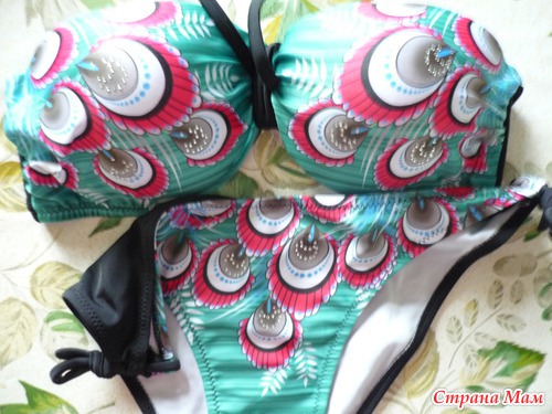 Заказывала 44 размер, но чашка на бюсте на В, не меньше)))) на плавках по бокам регулировка, т. е. одеть можно и на значительно больше попу.
