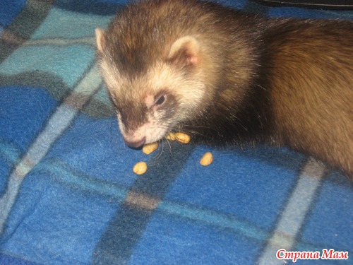 Толстый ест всё или почти всё. Сырое и варёное мясо, фрукты, овощи, каши. Хитрюля у нас ест почти всё тоже самое. Только сырое мясо не ест. Очень любит булочки и овощи. Особенно любит сладкий перчик. У кошек с удовольствием тырят их корм.