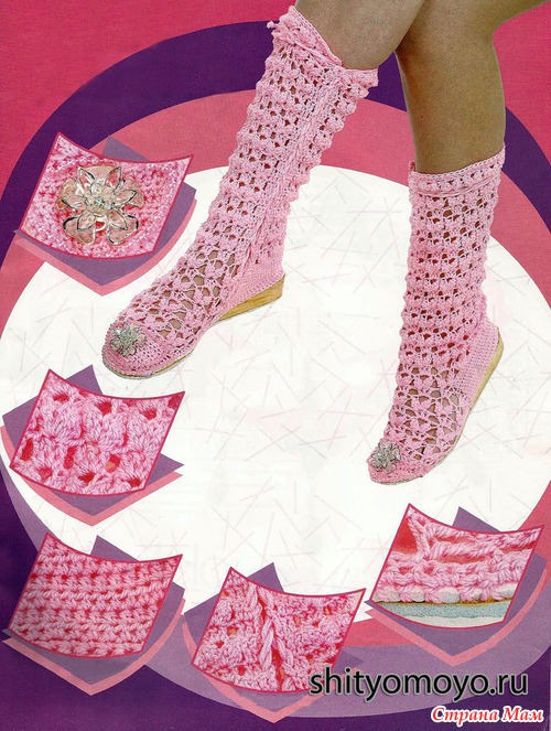 Нашла здесь http://shityomoyo.ru/posts/vazanie/bosonozhki-tufli-sapozhki/_all_/stilnoe-vyazanie-obuvi-letnie-sapozhki-sdelannye-svoimi-rukami-opisanie-sxema