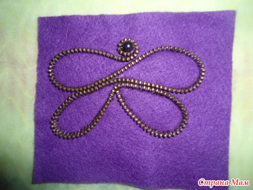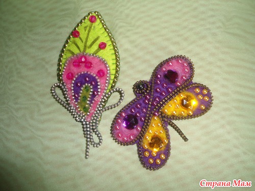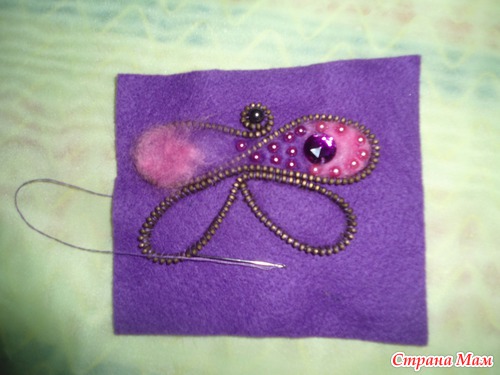 Заполнили крылышки бабочки пришиваем бусины и стразы,