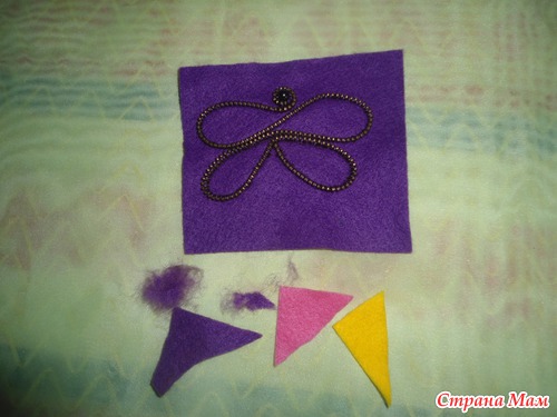 Теперь оформляем Брошечку, начесываем отстатки фетра, получается "шерсть",