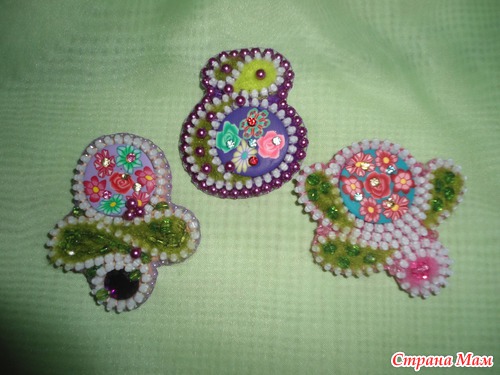 Это мои первые работы, после, я сшила еще несколько брошечек в том числе и детских.