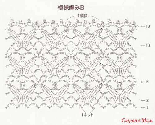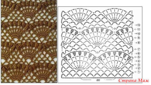 Только я немного изменила схемку и провязывала столбик с одним накидом, а не с двумя.