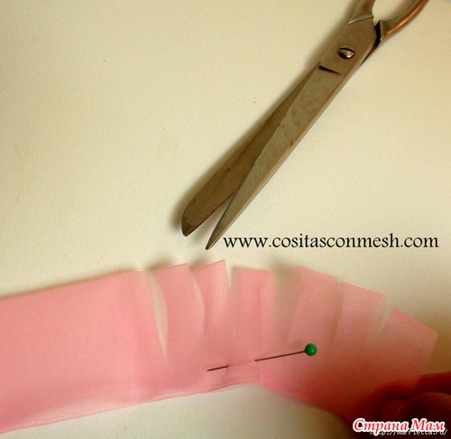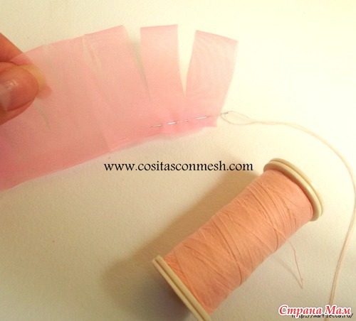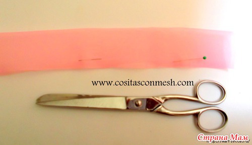 Для работы нам понадобится около одного метра органзы, шириной 9 см. Складываем полоску пополам