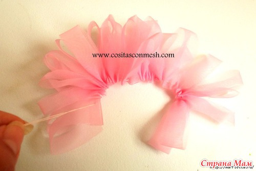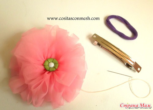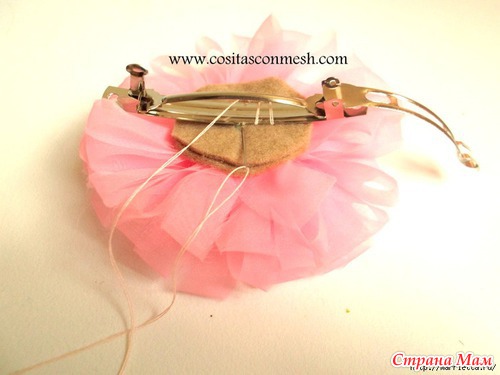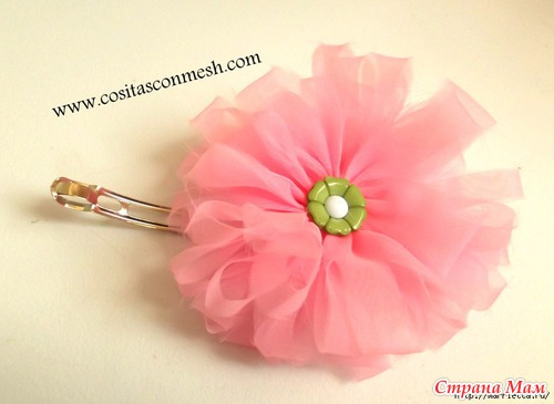 Если у вас есть органза, предлагаю вам из нее сделать нежный аксессуар для волос маленькой принцессы