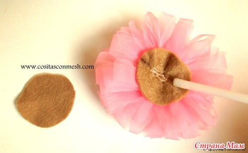 Второй фетровый кружок приклеиваем горячим силиконовым клеем
